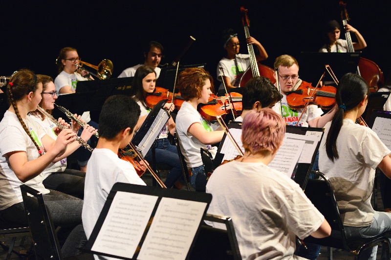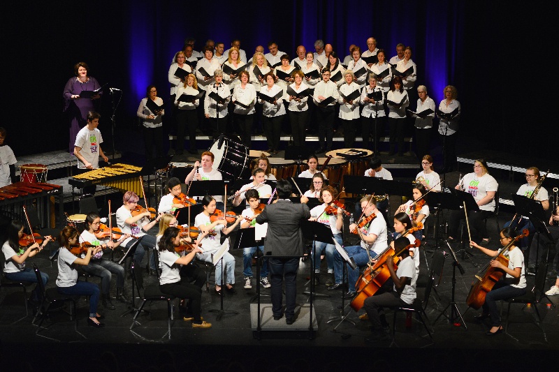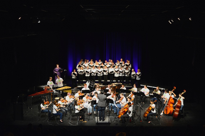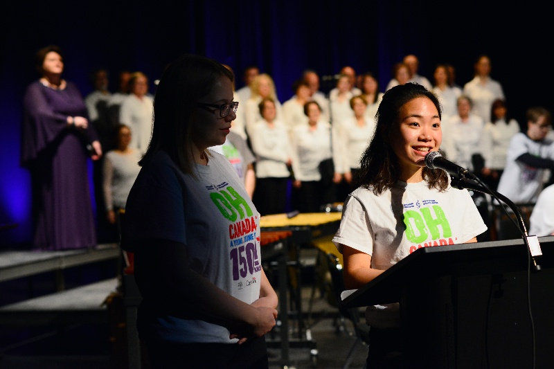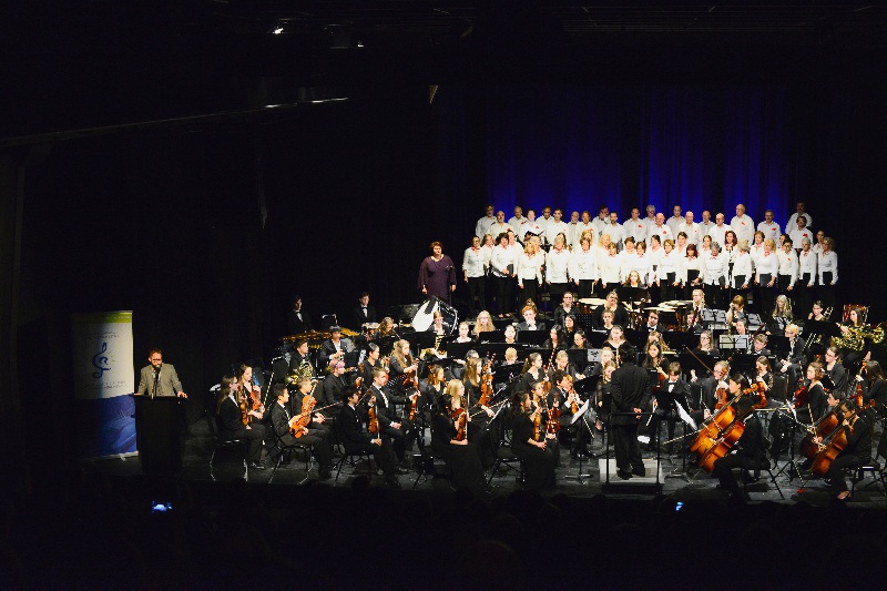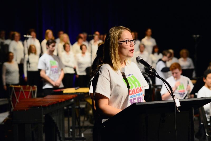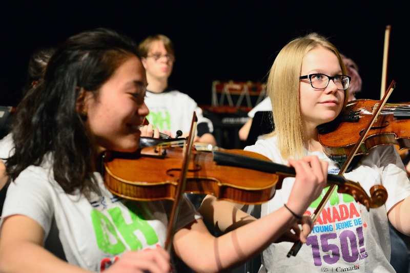 A big thank you to the Centre culturel de Caraquet in Caraquet, NB, for hosting two wonderful assemblies where students from école Marguerite-Bourgeoys, école Polyvalente Louis-Mailloux, and école Polyvalente W.-A.-Losier celebrated Canada 150 by sharing their art, stories and essays. Our NBYO orchestra members were proud to be joined on stage by soloist Suzanne Chiasson, our local C150 choir under the direction of Isabelle Thériault and guest speaker Herménégilde Chiasson. Commemorative plaques were presented to representatives of each school as a thank you for their participation in our special project.